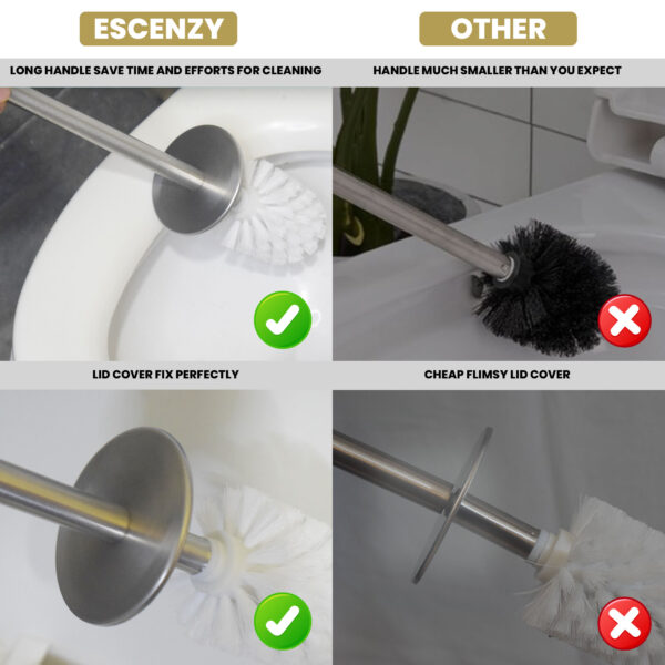 • Sturdy Lid Integration: The decorative toilet brush holder’s lid is not only elegantly designed but also securely fits into the holder, offering a robust and stable solution, unlike cheap and flimsy alternatives.