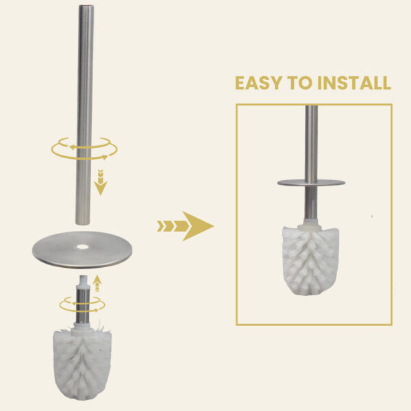 • Rust-Resistant Stainless Steel Brush: Crafted from premium stainless steel, our modern toilet brush black gold is resistant to rust, providing a long-lasting and practical solution for your bathroom.
