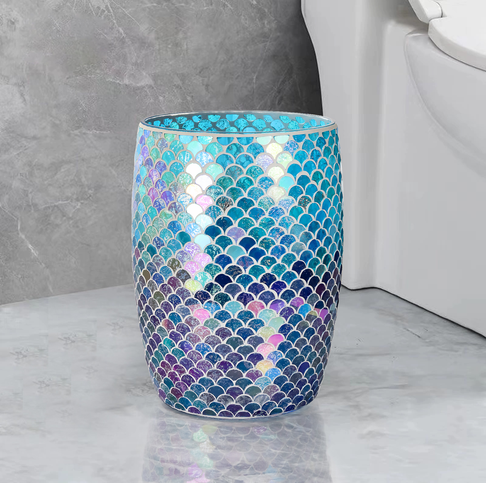 • Versatile Mosaic Glass Decor – Add a touch of glamour to any room with this small Trash Can, enhancing the ambiance in bathrooms, bedrooms, offices, kitchens, living rooms, or any open area.