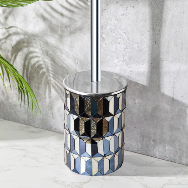 • Black and Gold Glass Holder: The holder is something special – it’s made from beautiful black gold Mosaic glass. It’s not just a regular holder; it’s a decorative piece that adds a touch of luxury to your bathroom, fitting perfectly into black/gold-themed decor.