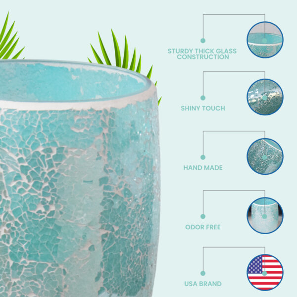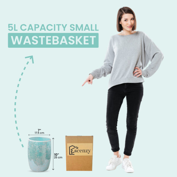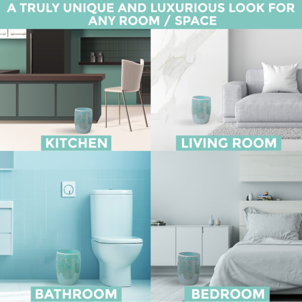 - Premium Small Garbage Can – Our decorative bathroom trash cans are hand-made with a beautiful mosaic glass finish for turquoise-themed decor. A must-have in your new house essentials for a luxurious bathroom experience.