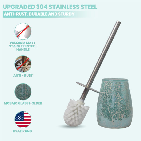 • Rust-Resistant Stainless Steel Brush: Crafted from premium stainless steel, our modern toilet brush turquoise is resistant to rust, providing a long-lasting and practical solution for your bathroom.