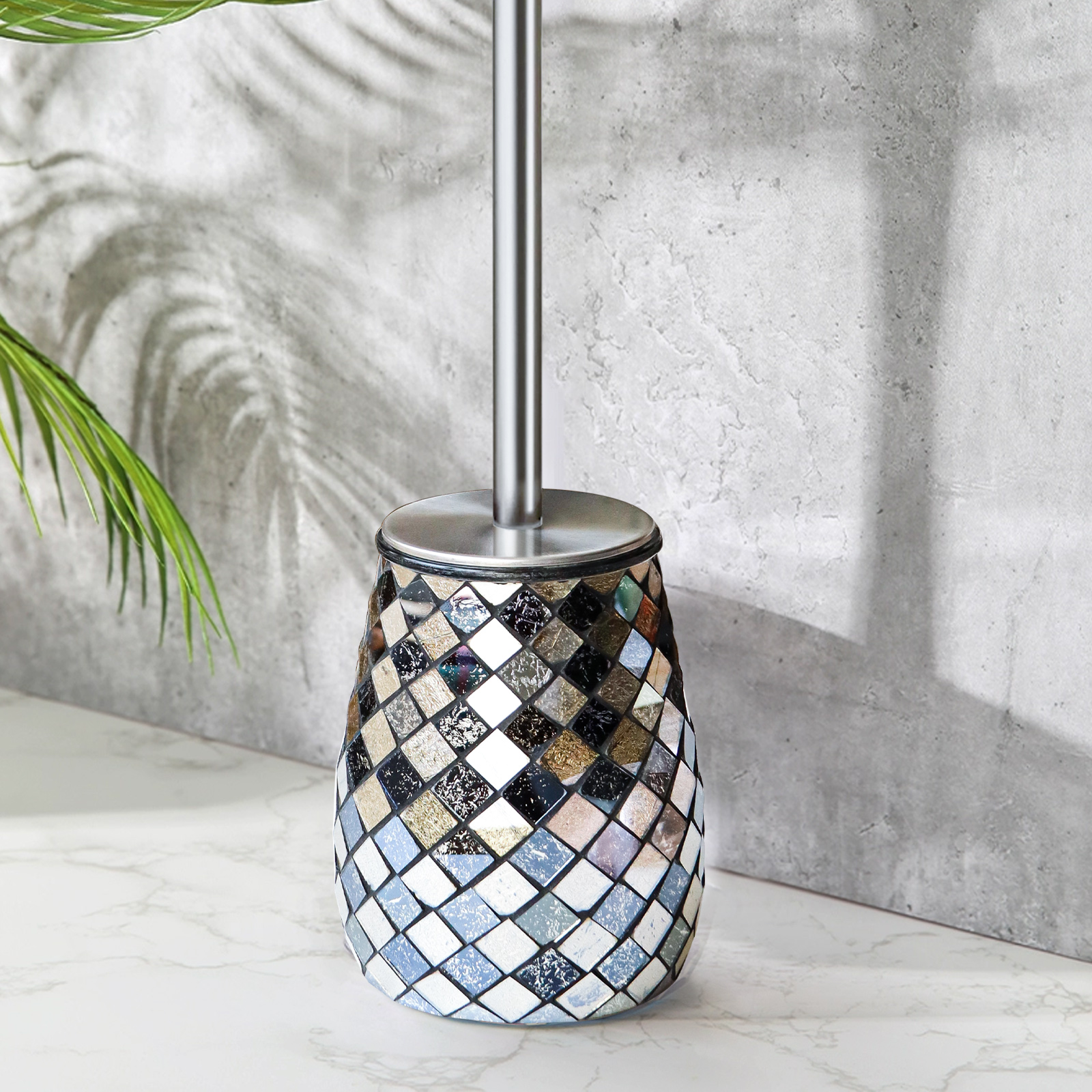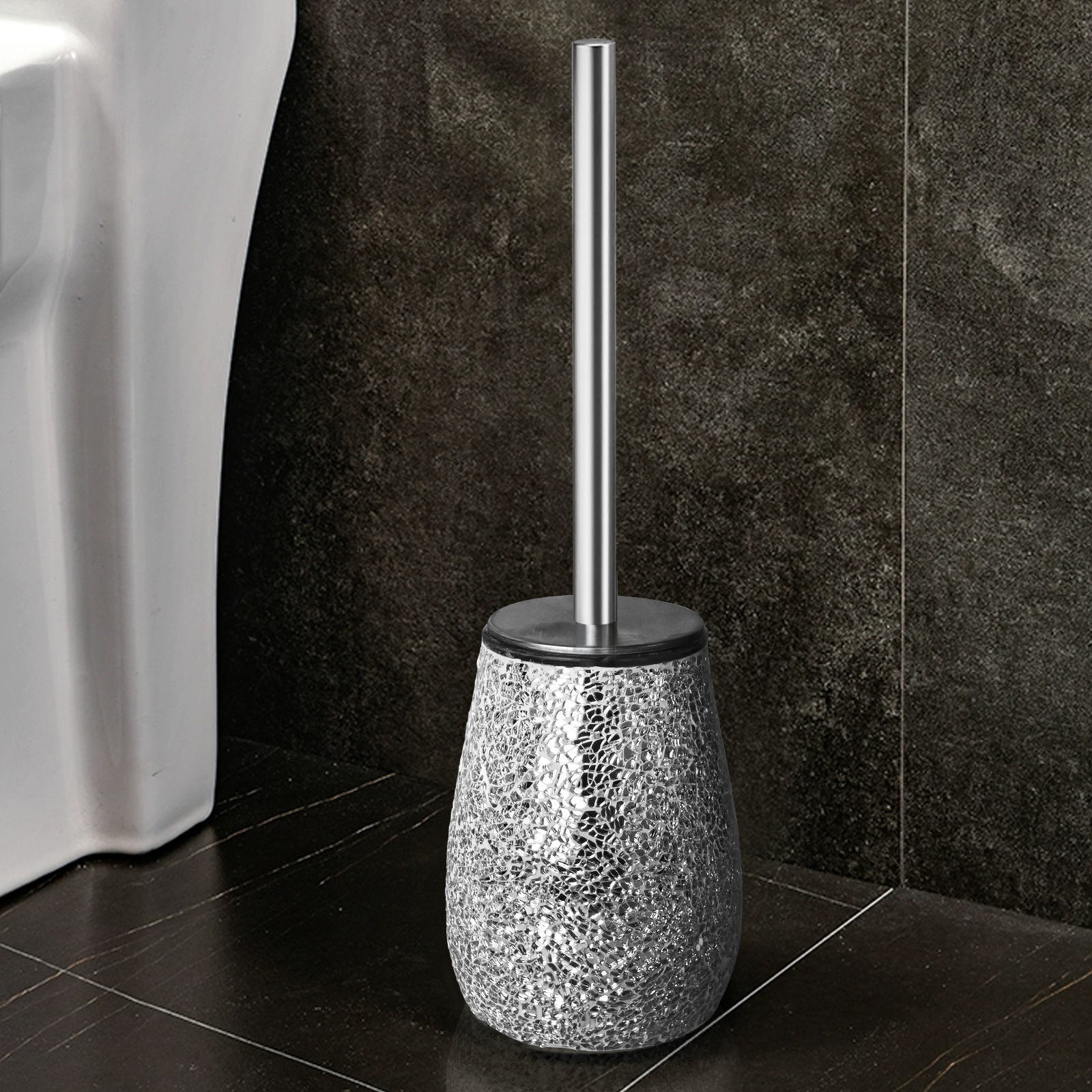 Decorative Toilet Bowl Brush and Holder | Luxury Silver Glitter Bathroom Accessories