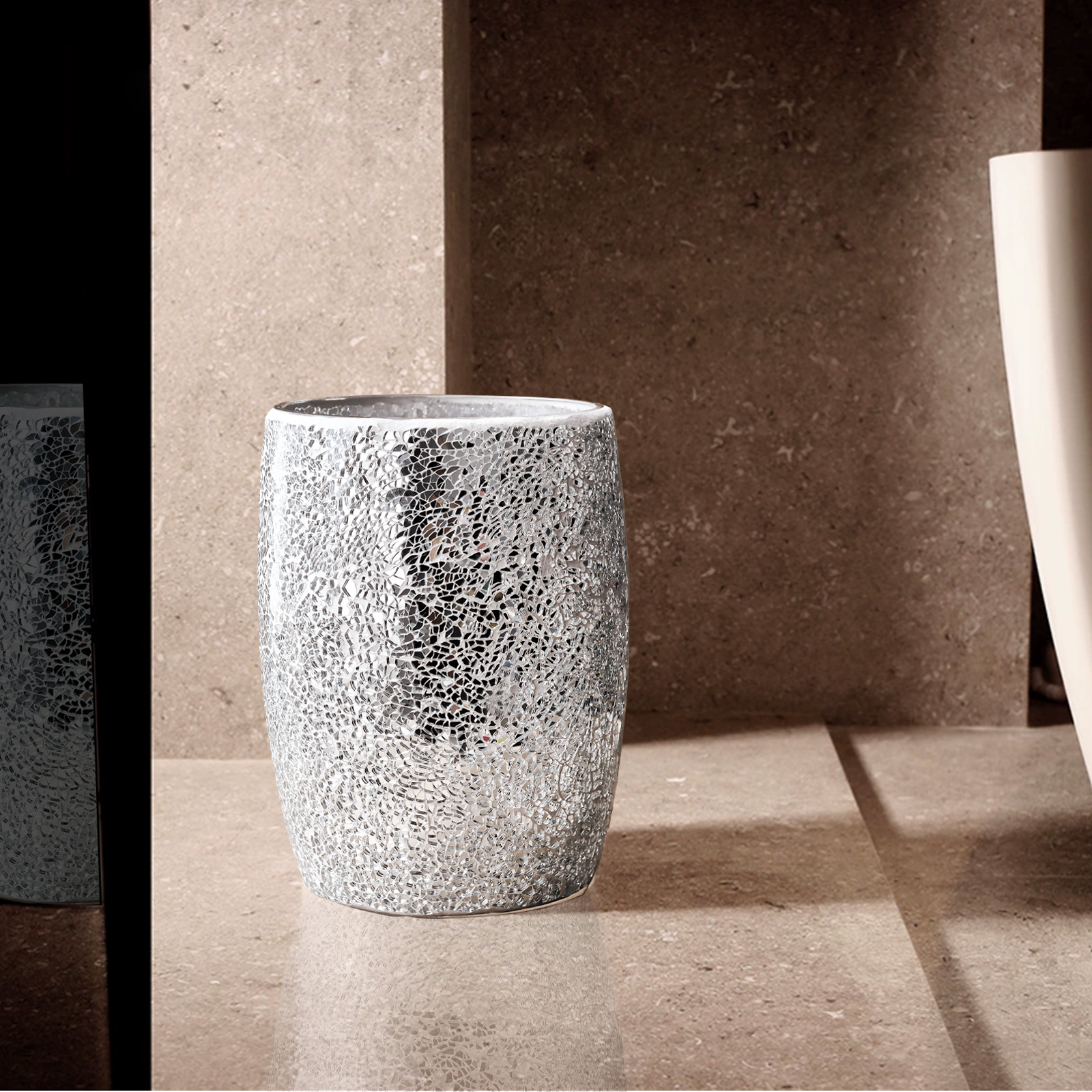 Modern Bathroom Trash Can Silver Mosaic Glass 5L