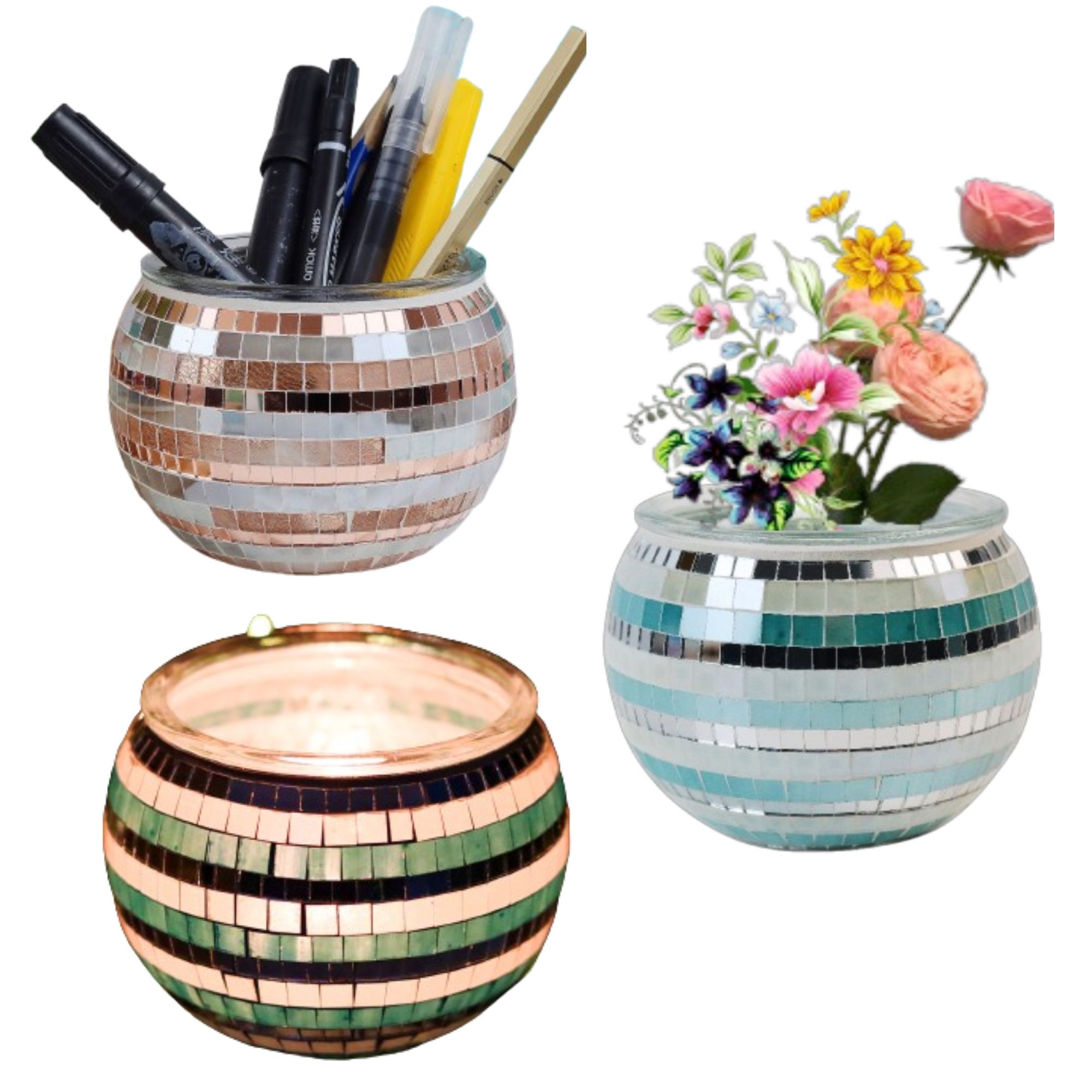 Modern Flower Vases Home Decor | 8″ Table Decoration Mosaic Glass Vase
